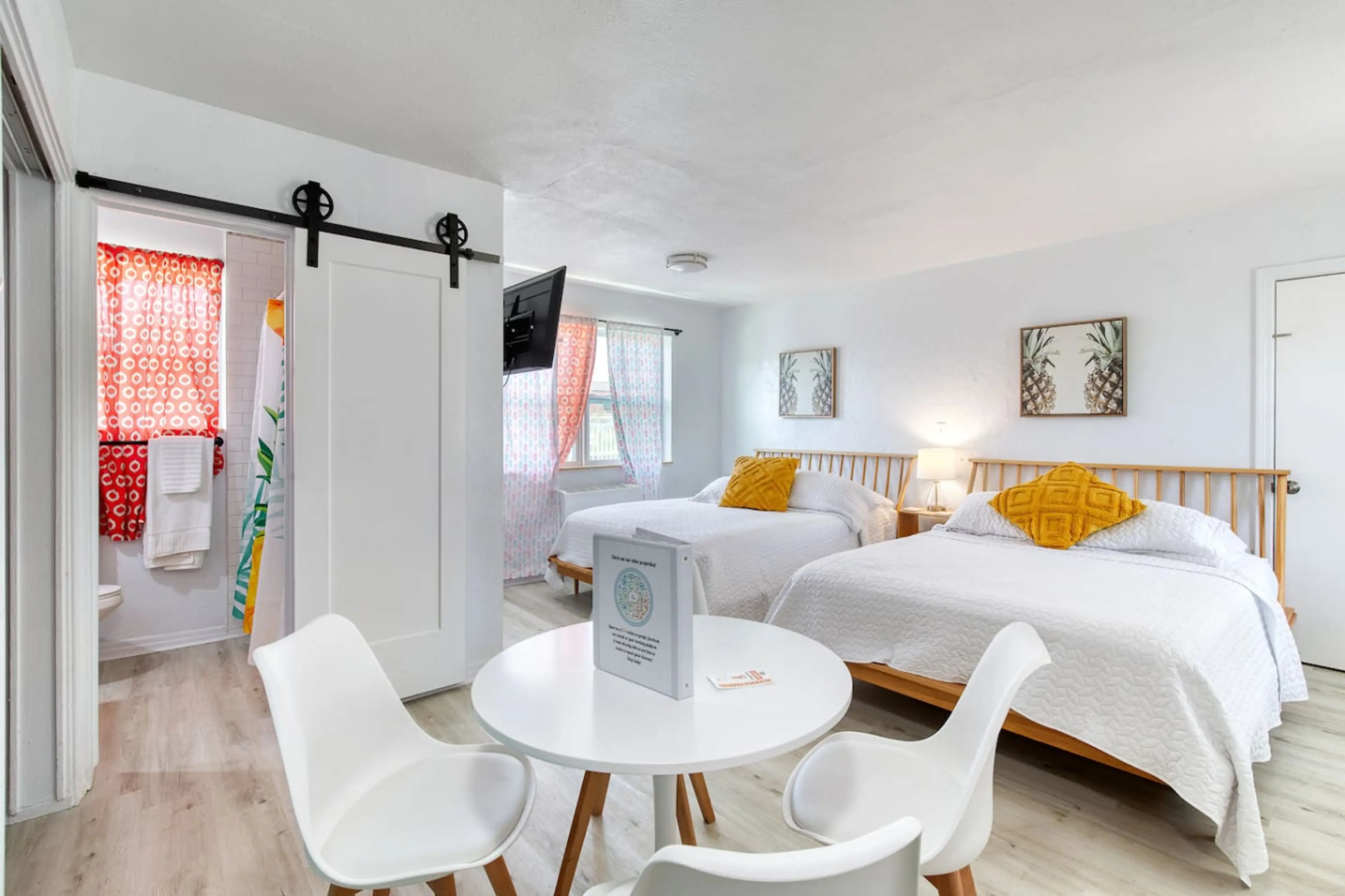 You’ll love the stylish decor of this charming place to stay. You will be close to everything at The Pineapple Shores Motel. The unit was recently fully renovated and includes an adorable kitchenette, 2 queen beds and a small futon that could sleep a child. Motel is located in Daytona Shores acro...